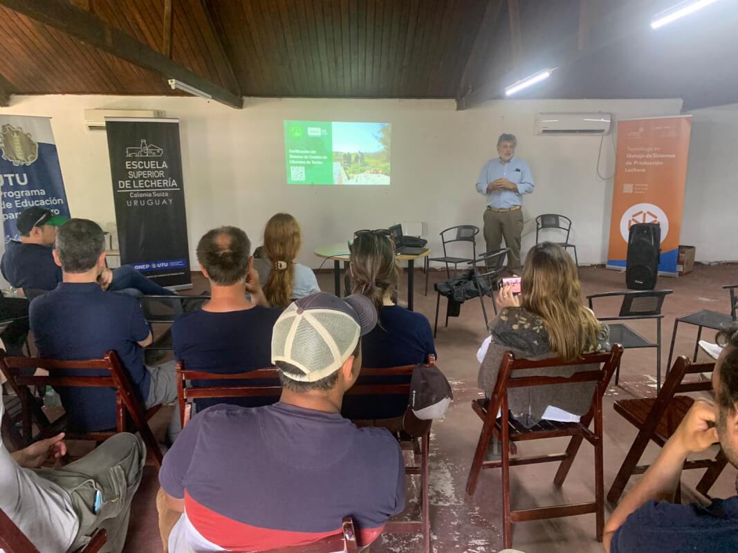 Luego en la biblioteca de la Escuela Superior de Lechería se hizo entrega de los dos certificados que garantizan que el diseño, la implementación y la operación de los sistemas de gestión de efluentes evaluados cumplen con la normativa actual.