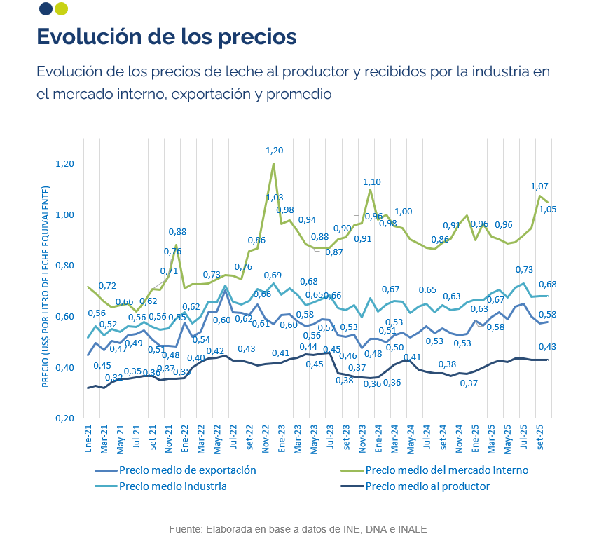 El precio recibido por la industria en dólares de octubre fue 9% mayor al recibido octubre del 2024 con aumento en los precios de exportación