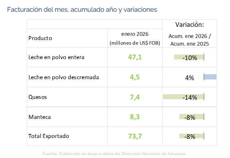 Exportaciones: enero de 2026 descendió 8% respecto a enero de 2025