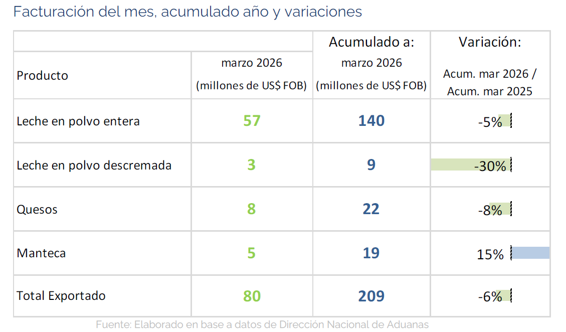 Exportaciones: marzo de 2026 descendió 6% respecto a marzo de 2025