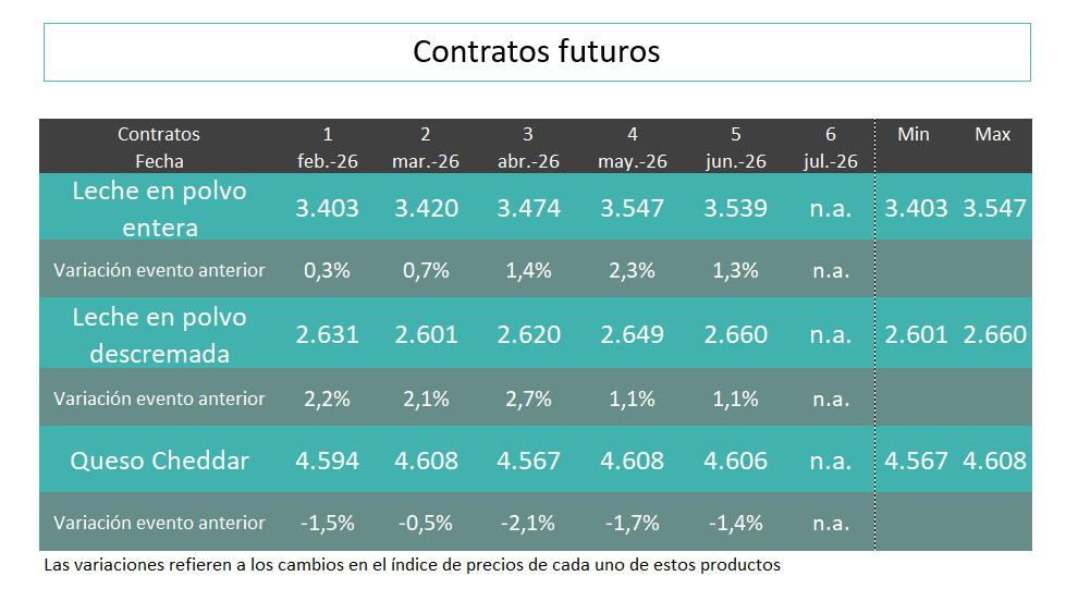 Global Dairy Trade: segunda licitación de enero 2026 LPE en US$ 3.449