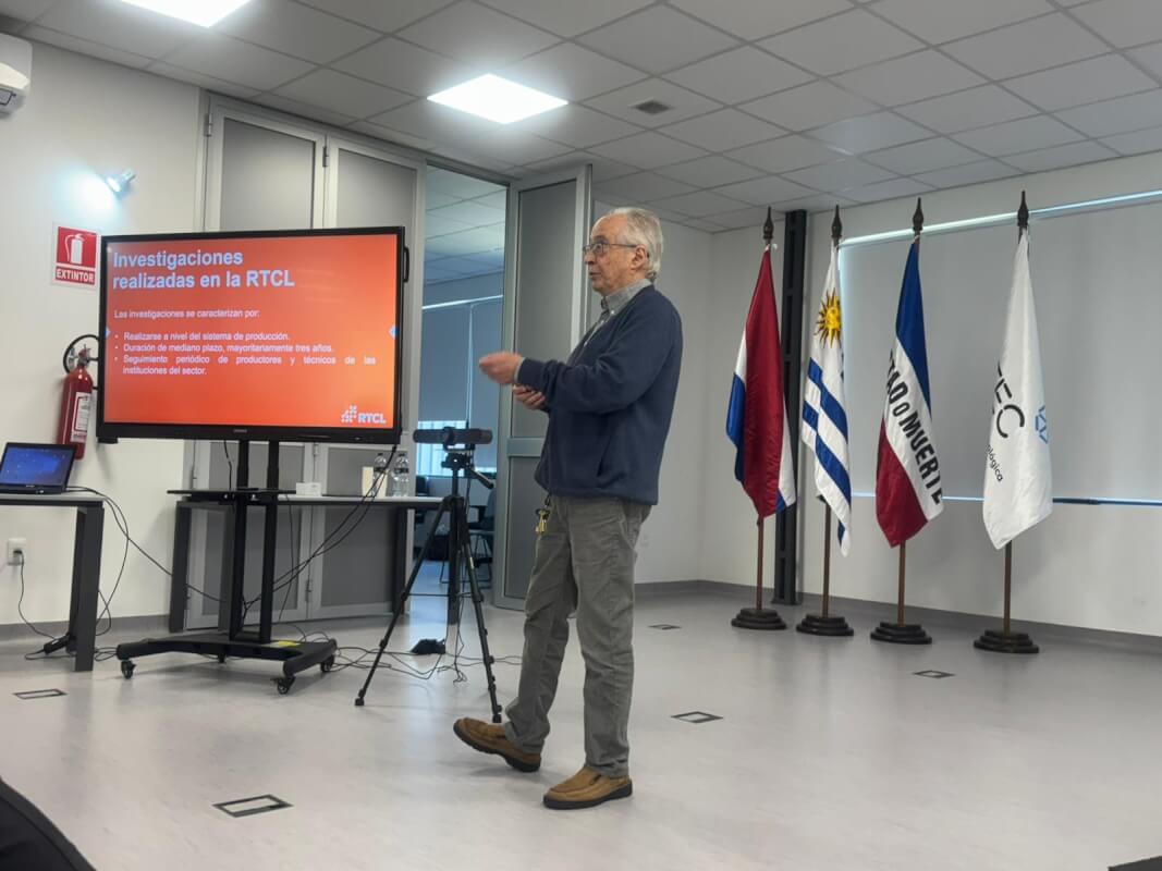 En representación del Instituto Nacional de la Leche (INALE), el Ing. Agr. Jorge Artagaveytia, integrante del directorio de la Red Tecnológica de la Cadena Láctea (RTCL), presentó una exposición sobre el rol, funcionamiento y principales logros de la red desde su creación.