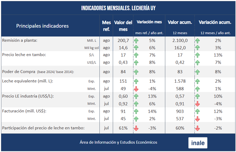 Indicadores Mensuales Lechería UY setiembre 2025